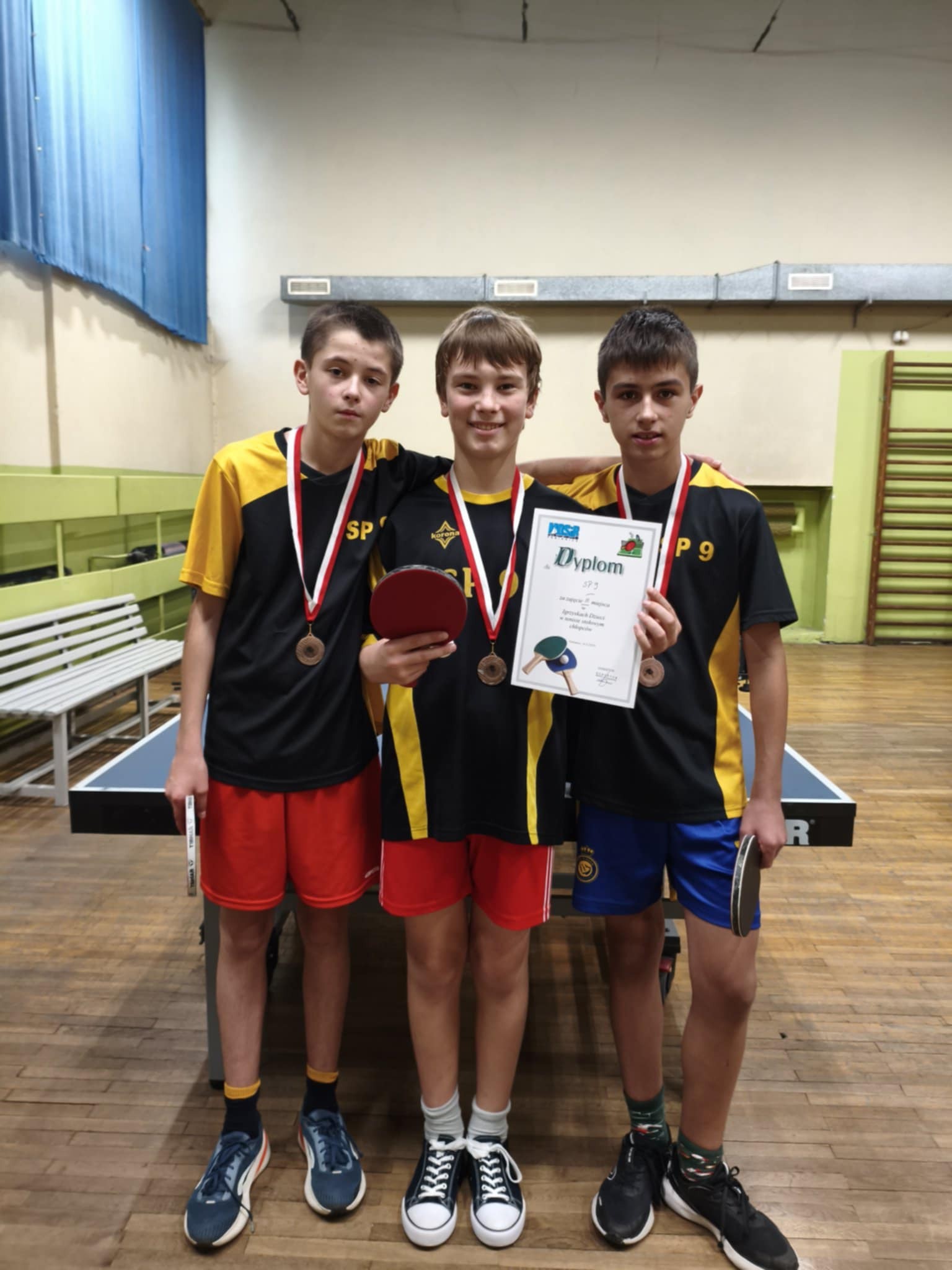 24 października odbyły się Mistrzostwa Pabianic w tenisie stołowym chłopców. Naszą szkołę reprezentowała trzyosobowa drużyna w składzie: Stanisław Rybiński, Artur Domoń i Szymon Osak. Chłopcy rywalizowali w systemie każdy z każdym. Podczas turnieju nasi chłopcy wygrali dwa mecze ( z „Jedynką” i z „Trójką”) i przegrali dwa mecze ( z „Szesnastką” i „Siedemnastką”). Po bardzo zaciętych meczach reprezentanci naszej szkoły zdobyli brązowe medale zajmując ostatecznie 3 miejsce. Serdecznie gratulujemy. Chłopców do zawodów przygotowywał pan Marcin Owczarek.