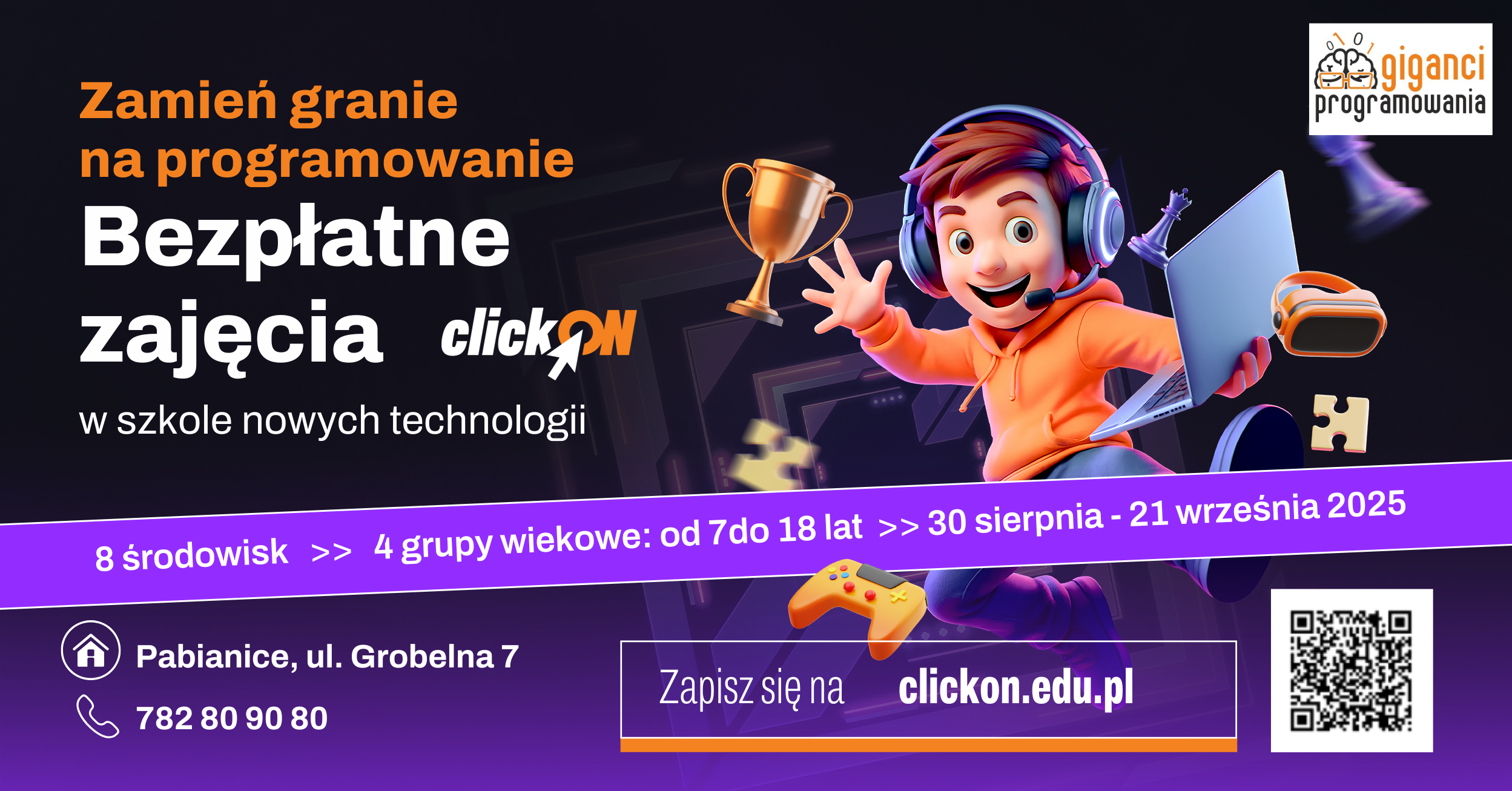 Z radością informujemy, że nasza szkoła wspiera projekt clickON – „Zamień granie na programowanie”, który otwiera przed Waszymi dziećmi wyjątkową możliwość nauki programowania i zdobycia praktycznych umiejętności potrzebnych w cyfrowym świecie.